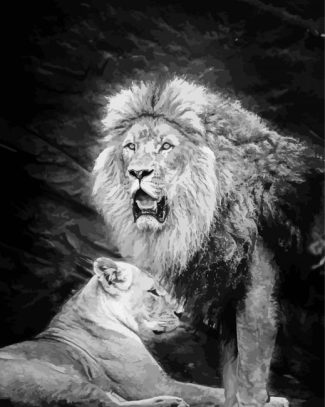 Black And White Two Lion And Lioness – 5D Diamond Painting