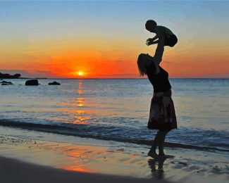 Mother And Son On Beach Sunset – 5D Diamond Painting