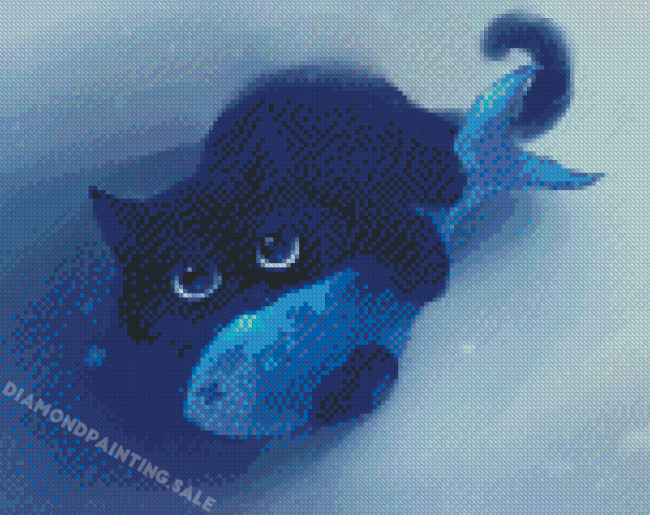 Cat With Fish Art – 5D Diamond Painting