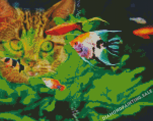 Cat With Tropical Fish – 5D Diamond Painting